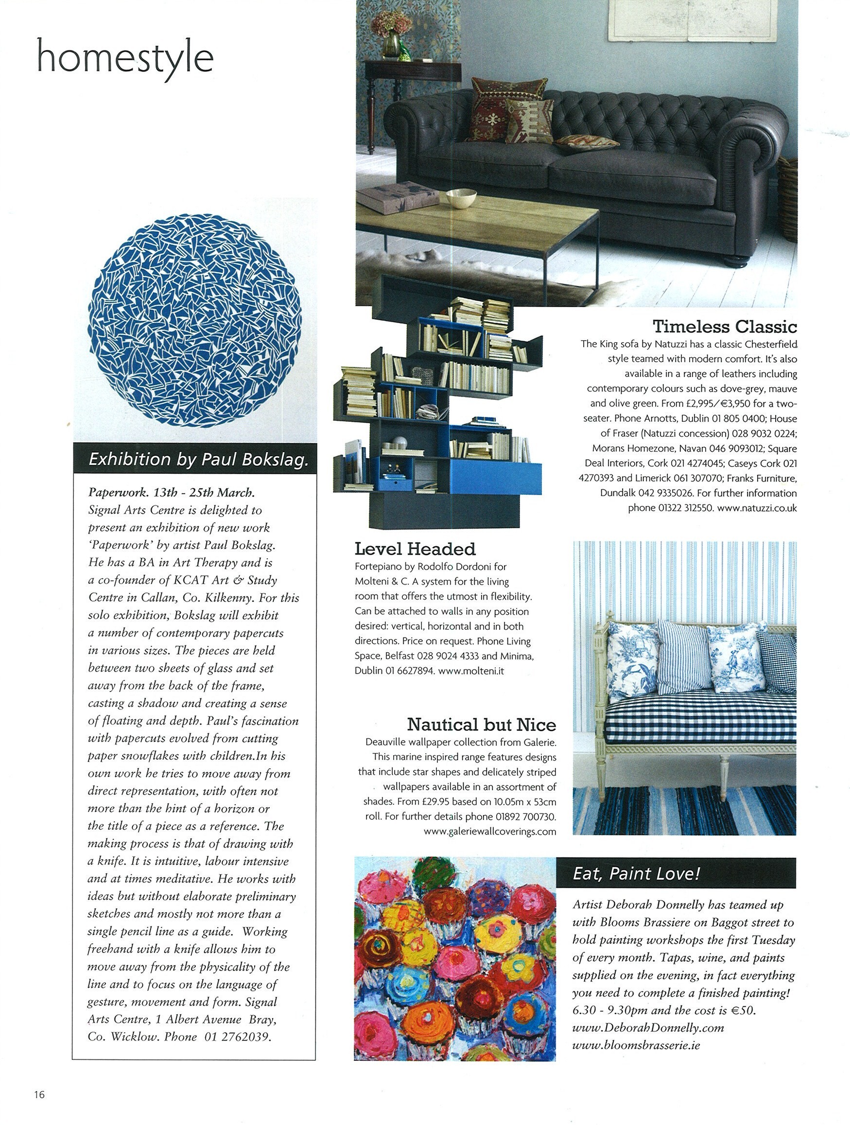 - Paperwork, Signal Arts Centre, Bray, Co. Wicklow, Tuesday 13th – Sunday 25th March 2012; see Signal Arts Newsletter